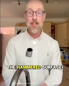 Onze pannen zijn gemaakt van 100% puur Grade 1 titanium en afgewerkt met een met de hand gehamerde microstructuur. Deze fijne textuur creëert natuurlijke “dalletjes” die aanbakken minimaliseren, de luchtcirculatie verbeteren en het oppervlak op den duur hydrofoob maken. Zo ontstaat er een natuurlijke anti-aanbaklaag – zonder Teflon, coating of chemicaliën.